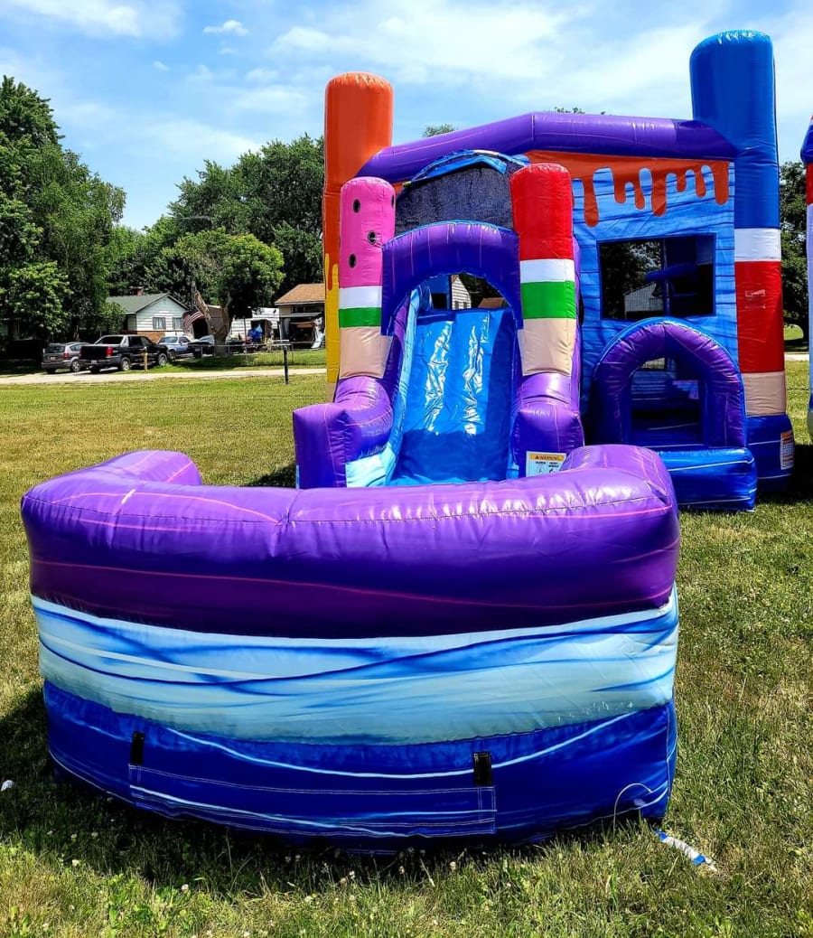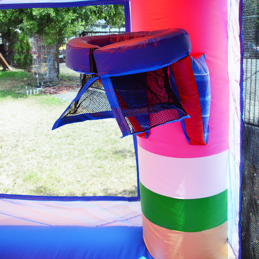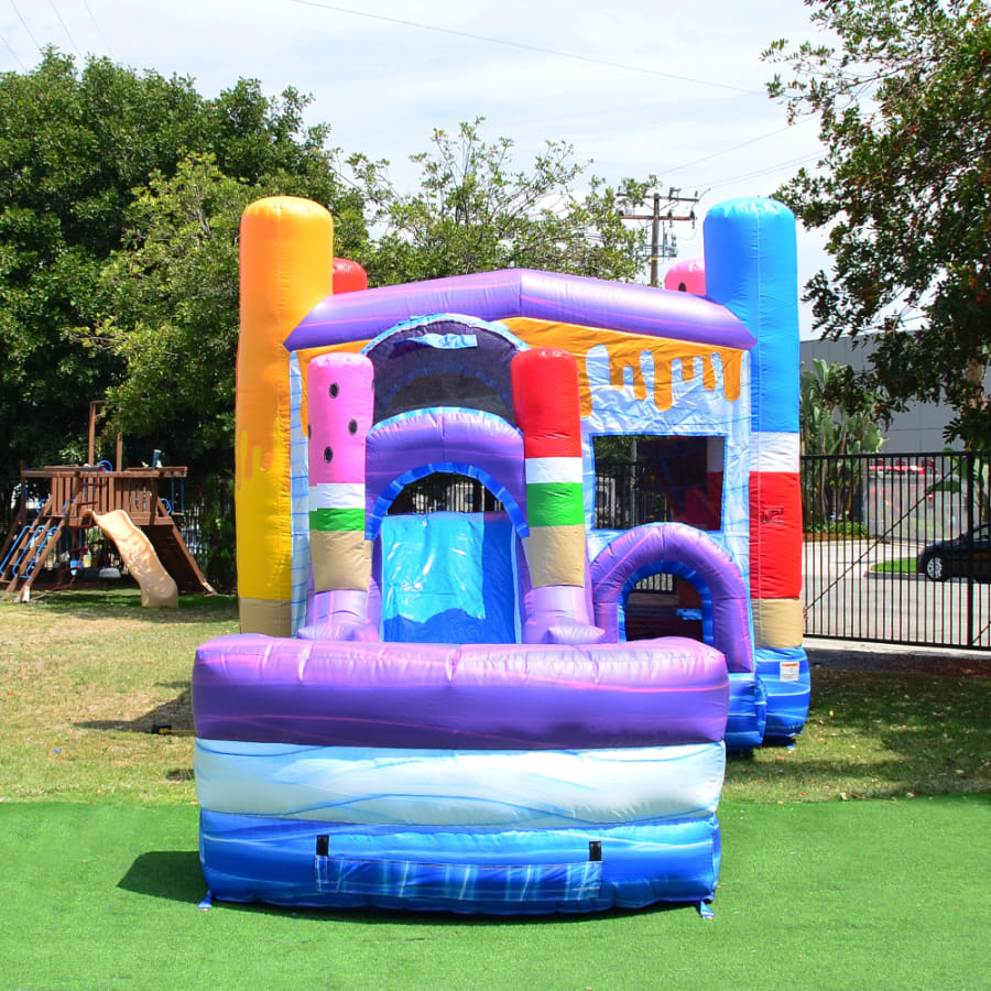Indulge your ice cream craving with the Ice Pops Bounce & Slide! This bouncy castle features a 6-foot single-lane slide along with an inflated landing zone for dry use. The fully enclosed entrance helps keep small children from falling off from the side of the ramp. A tunnel is under the slide, while the unused corner of the bounce house slide can be turned into a secret hideout. Convert to a wet bounce house slide by simply connecting any garden hose to the misting system.