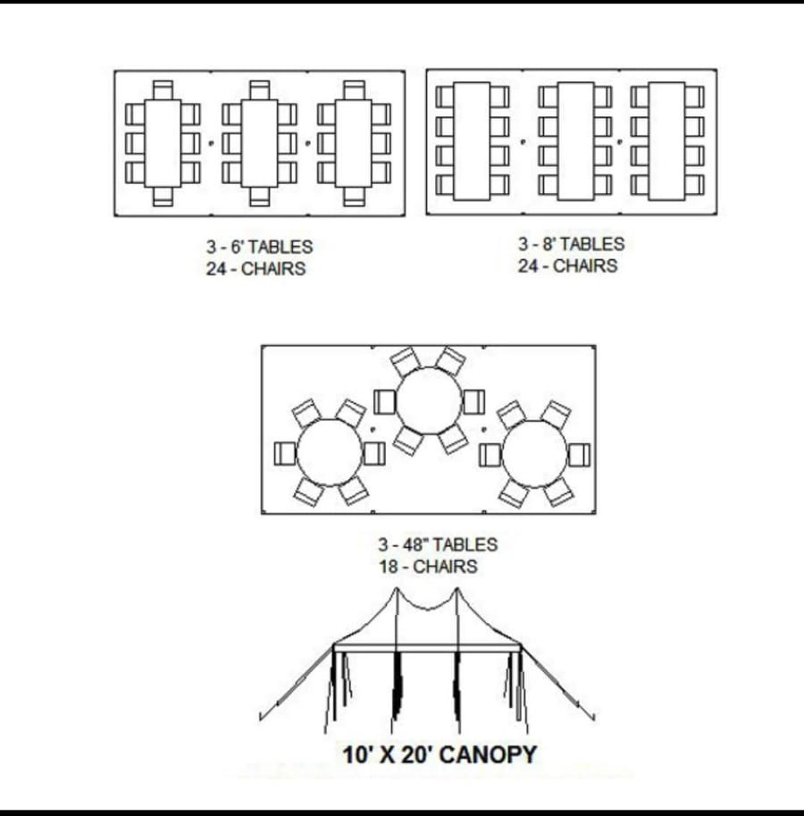 Provide your guest the comfort of a sitting area. These chairs are beige in color and have a maximum capacity of 350lbs. Each chair can be folded for easy storage, view seating charts for best seating options or add a canopy for a beautiful look. Packages available upon request.